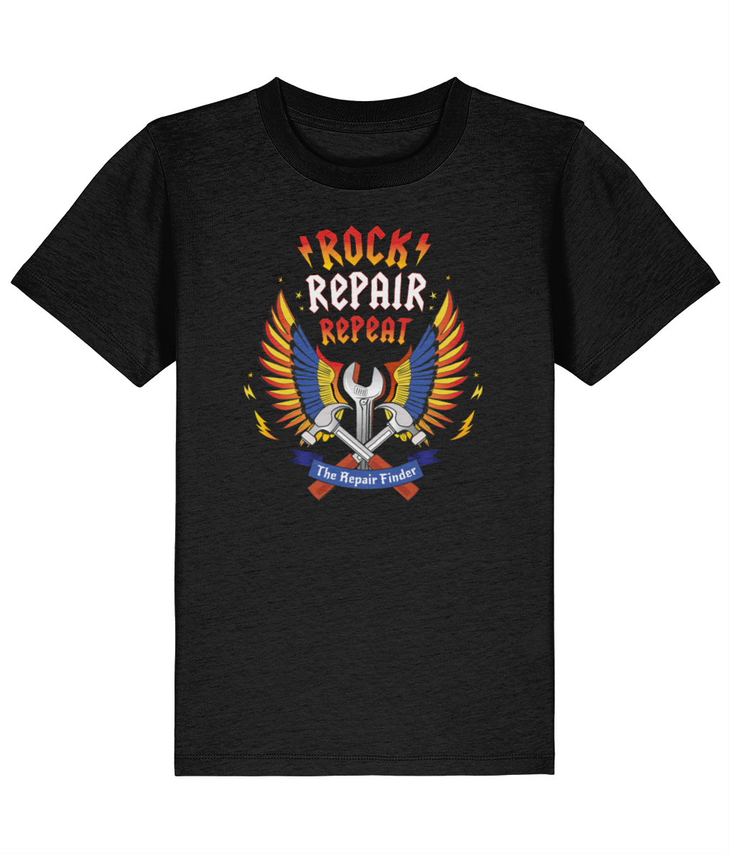 Perfect for (children of) makers, DIYers, mechanics, engineers, technicians, and anyone who believes repair should rock. Whether you’re in the workshop, on stage, or just out spreading the repair mindset, this t-shirt will add a classic rock attitude.